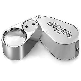 40X Loupe Magnifier , LED/UV Illuminated Jewelry Loop Pocket Folding Magnifying Glass with Metal Construction