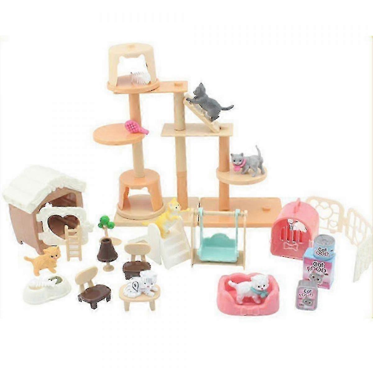 43 Pcs Cat Pretend Play Toys, Realistic Animal Figures with Care Center Playset, Interactive Pet Role Play Set for Kids