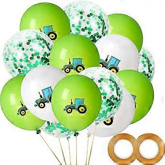 45 Pieces Green Tractor Birthday Balloons Green Confetti Latex Balloon and 2 Rolls Gold Balloon Ribbon for Farm Theme Birthay Baby Shower Party Decora