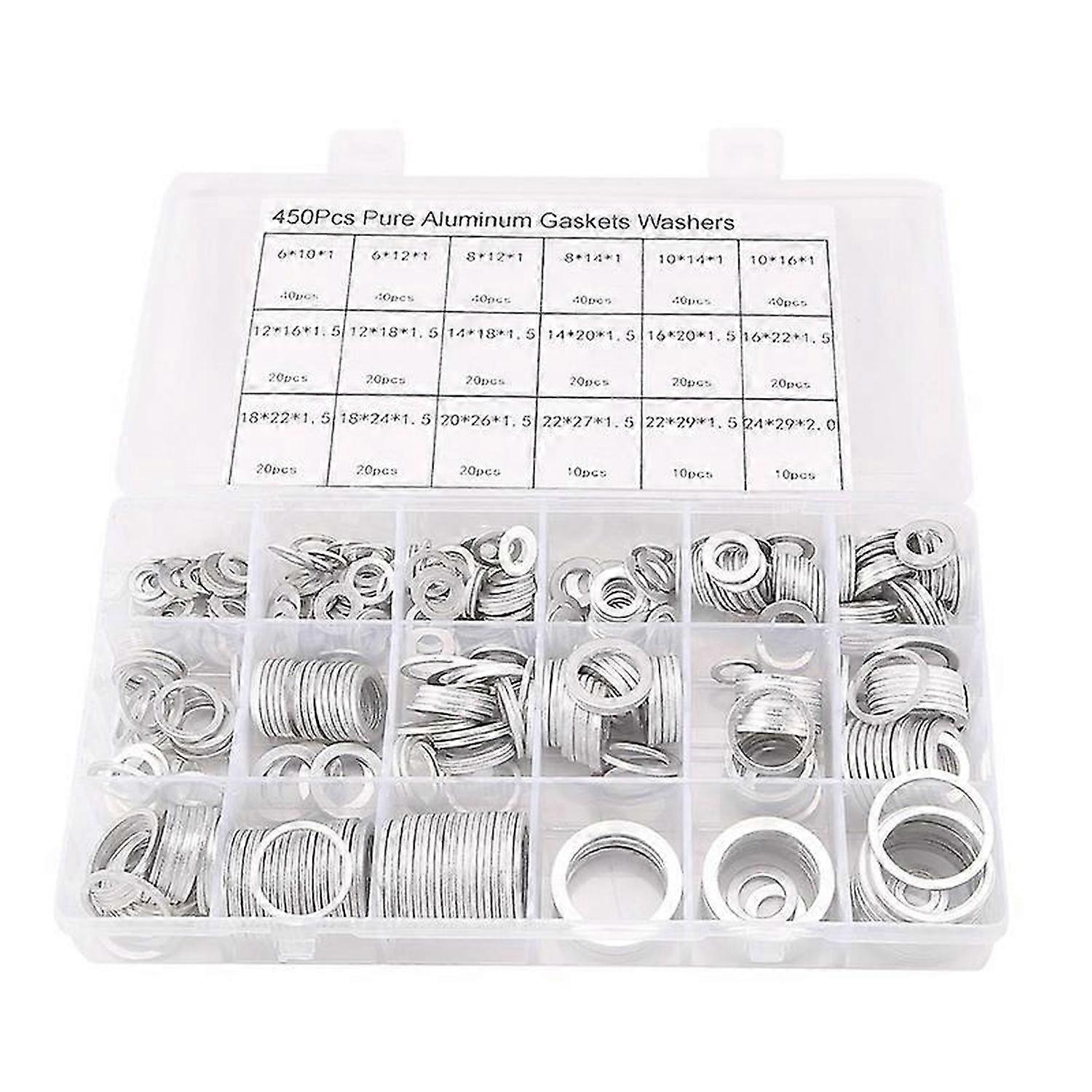 450Pcs Aluminum Gasket Aluminum Flat Washer Aluminum Sealing Ring Combination
