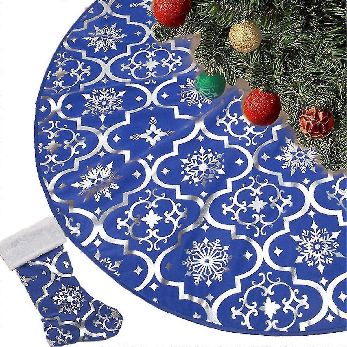 48 Inch Christmas Tree Skirt Xmas Soft Cover Mat Decor Snowflake Collar Farmhouse Tree Skirt,Blue