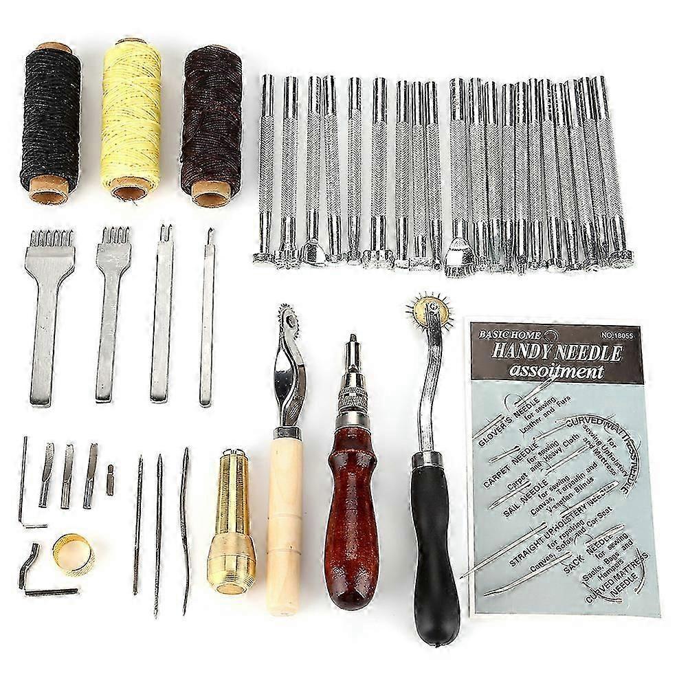 48pcs Leather Craft Sewing Tool Set Punch Cutter Groover Beveler Stitching