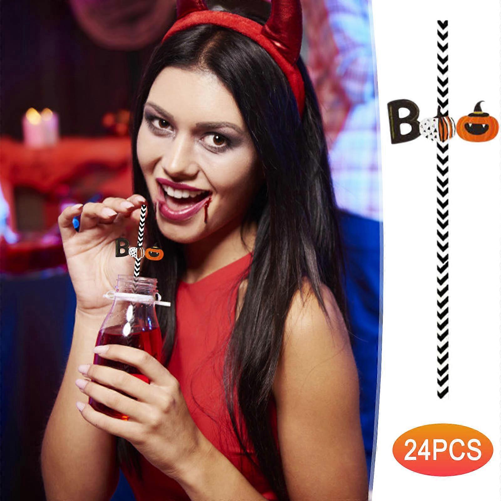 48PCS Halloween Disposable Straws Spider Pumpkin Witch Straws Insert 2024 Halloween Decoration HappyHalloween Party Supplies Birthday Decoration Holid