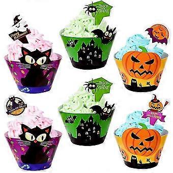 48pcs Halloween Cupcake Toppers For Halloween Decorations