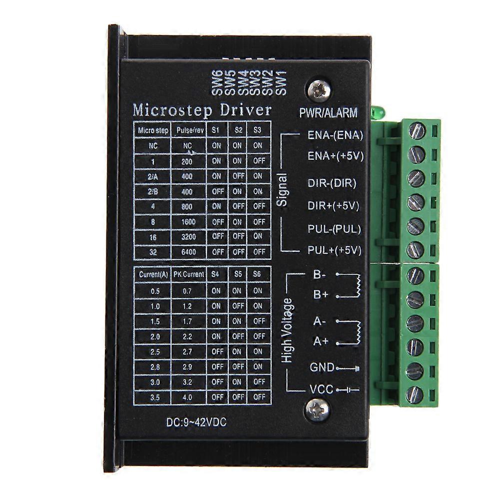 brand new and high quality Material: Electrical components Color: See pictures 42/57/86 TB6600 Stepper Motor 32-segment driver updated version 4.0A 40VDC for CNC milling machine Specifications: This unit is an upgraded version of TB6600, the breakdown of increase to 32 segments, for high targeting purposes. Applicable stepper motor: 42.57, 86 Phase type phase (4 wire 6 wire 8 wire line) Characteristics: 1, 9 V-40 V for DC power supply; 2, H-bridge Bipolar constant-phase flow-driven; 3, the maximum output current of 4.0A eight optional; 4, up to 32 segments of six types of sub-modes available; 5, the input signal is high-speed optical insulation; 6, standard common anode single pulse interface; 7, HOLD function offline; 8, semi-closed chassis can accommodate the most demanding environment; 9, provide semi-automatic current locking function; 10, built-in thermal for protection and overcurrent for protection. Size: 9.6*5.5*2.7cm/3.88"*2.17"*1.06" Quantity: 1Pc 1Pc x TB6600 Single Axis 4A Stepper Motor Driver Controller 9~40V Micro-Step CNC