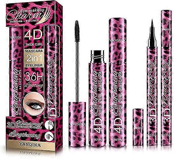 4d Silk Fiber Mascara & Eyeliner Set, Waterproof Thickening Eyes Makeup,birthday Valentine's Day Gift