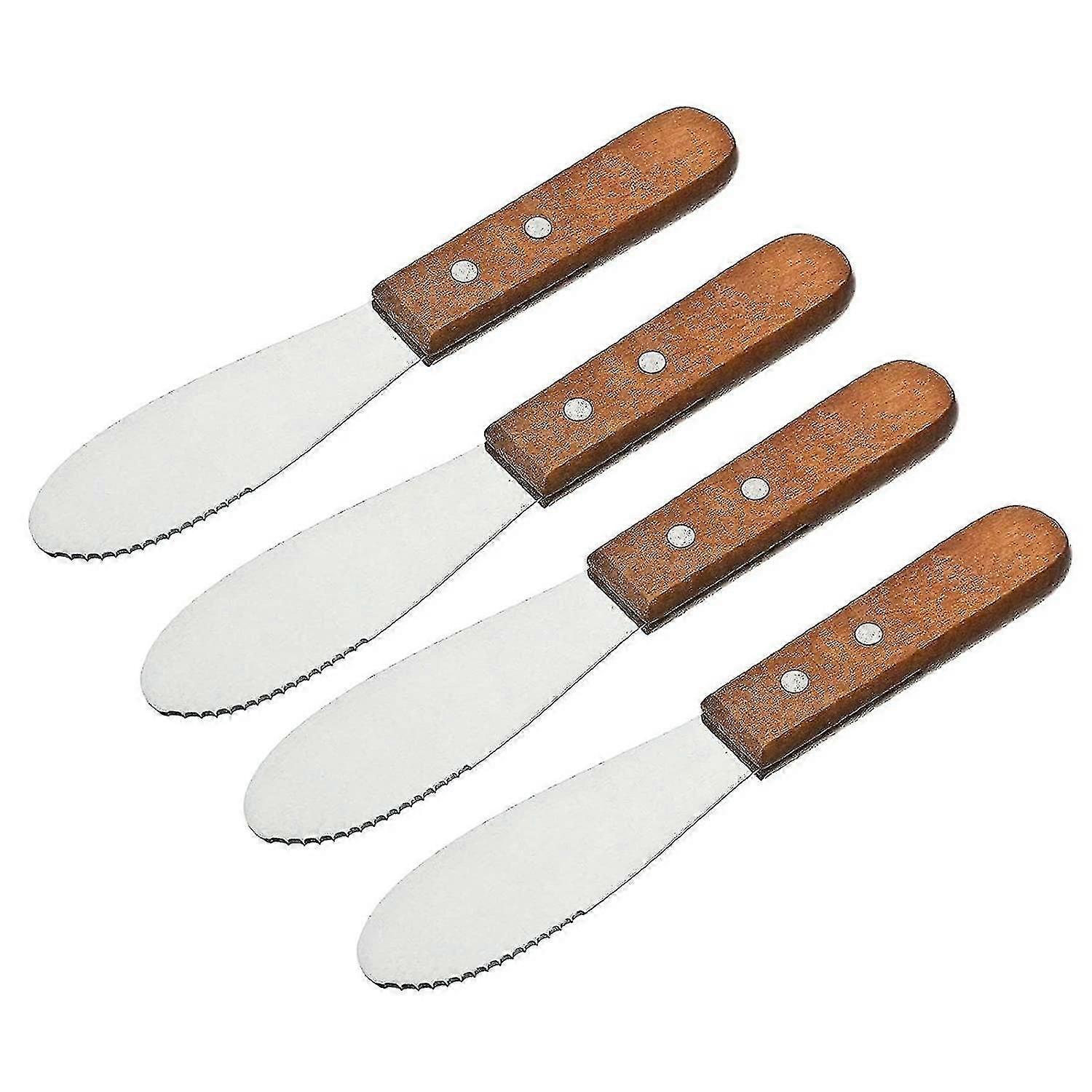4pcs Butter Knife Stainless Steel Wooden Handle Cake Slicer