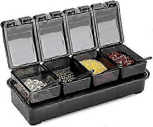 4Pcs Acrylic Storage Containers for Spices and Seasonings, Black Condiment Pots and Rack, Ideal for Organizing Your Kitchen