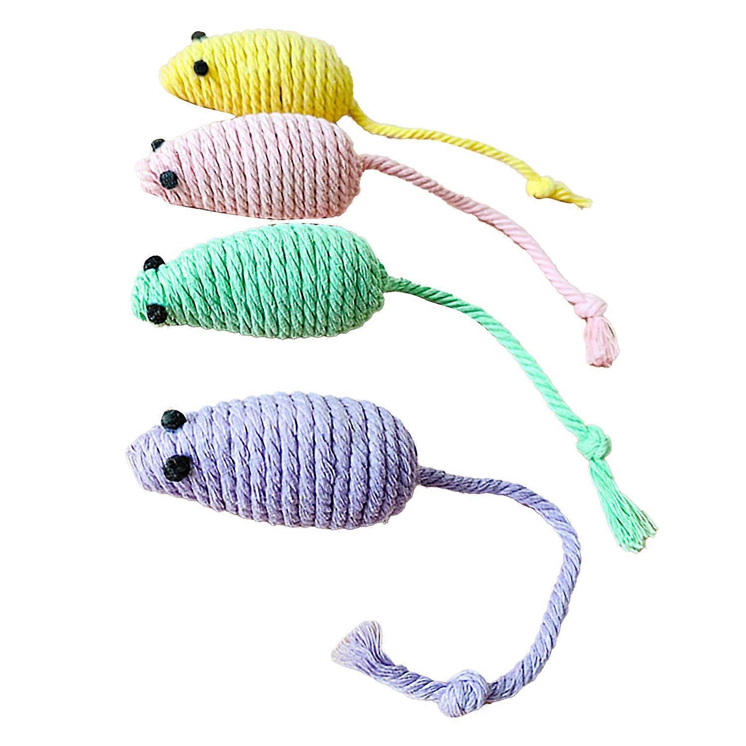 4Pcs Cat Interactive Toy with Built in Sound Stone Soft Comfortable Relieve Boredom Cotton Rope Weav