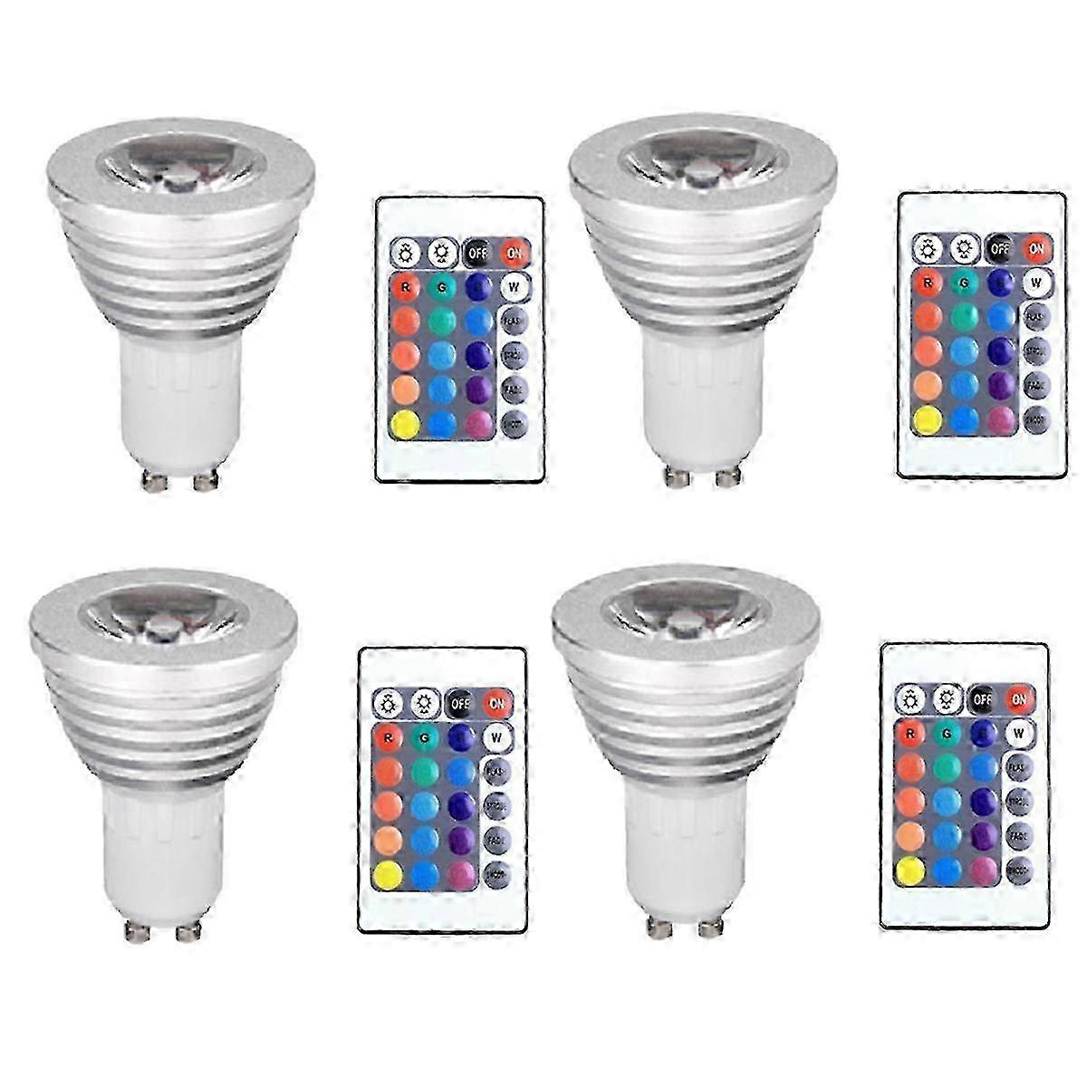 4pcs GU10 Bulbs and 1remote Control with Memory Function 4dynamic Lighting Modes Spotlight 17colors Changeable Spotlight wcpy