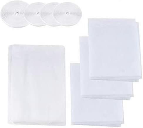 4pcs Mosquito Net Window Net Insect Screen,130cm x 150cm,150 x 200cm,with 4 Self Adhesive Tapes (White)