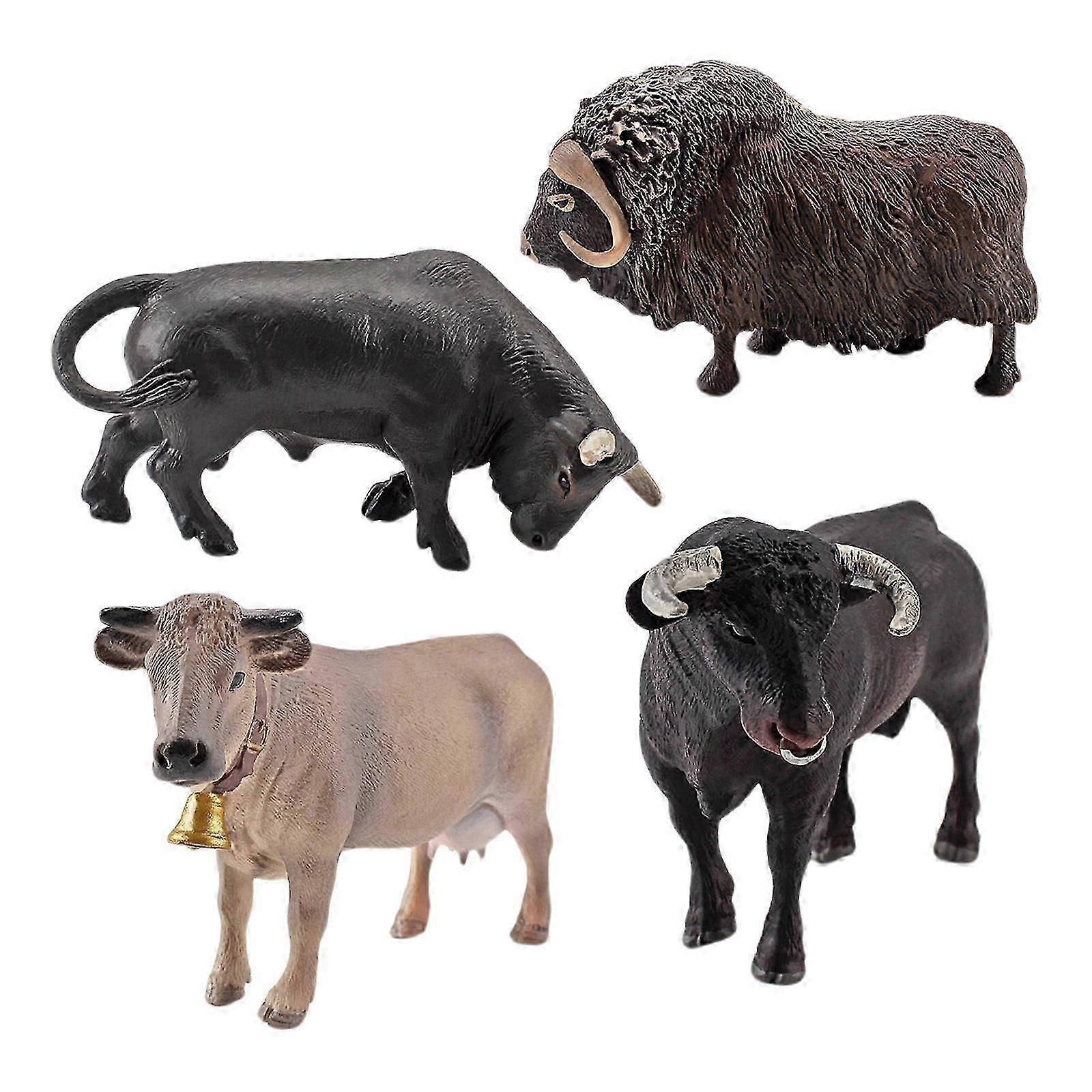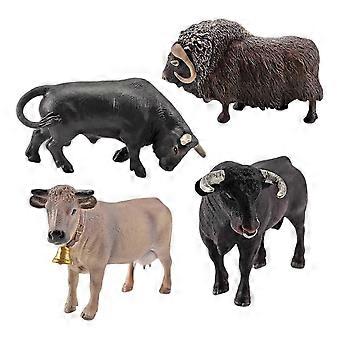 4Pcs Simulation Solid Model Bull Ranch Cow Set PVC Animals Action Figures Toys