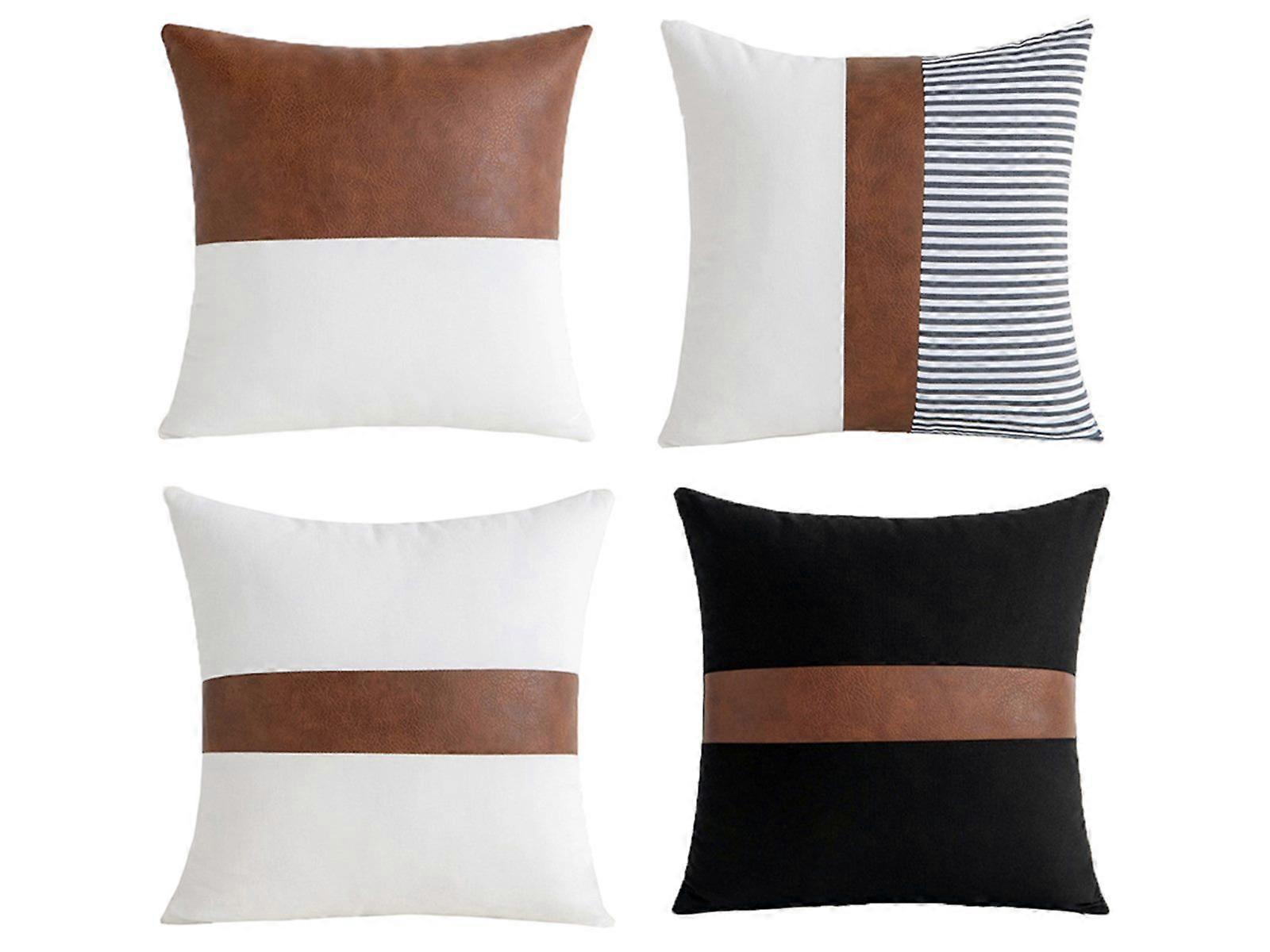 4PCS Throw Pillow Covers PU Leather Patchwork Cushion Covers