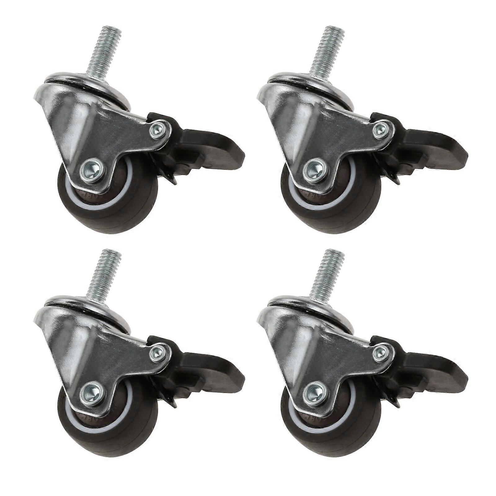 4pcs/set 1Inch M6*15 Threaded Stem Casters with Brake Soft Rubber TPE Swivel Wheels 44kg Loading Capacity for Small Furniture
