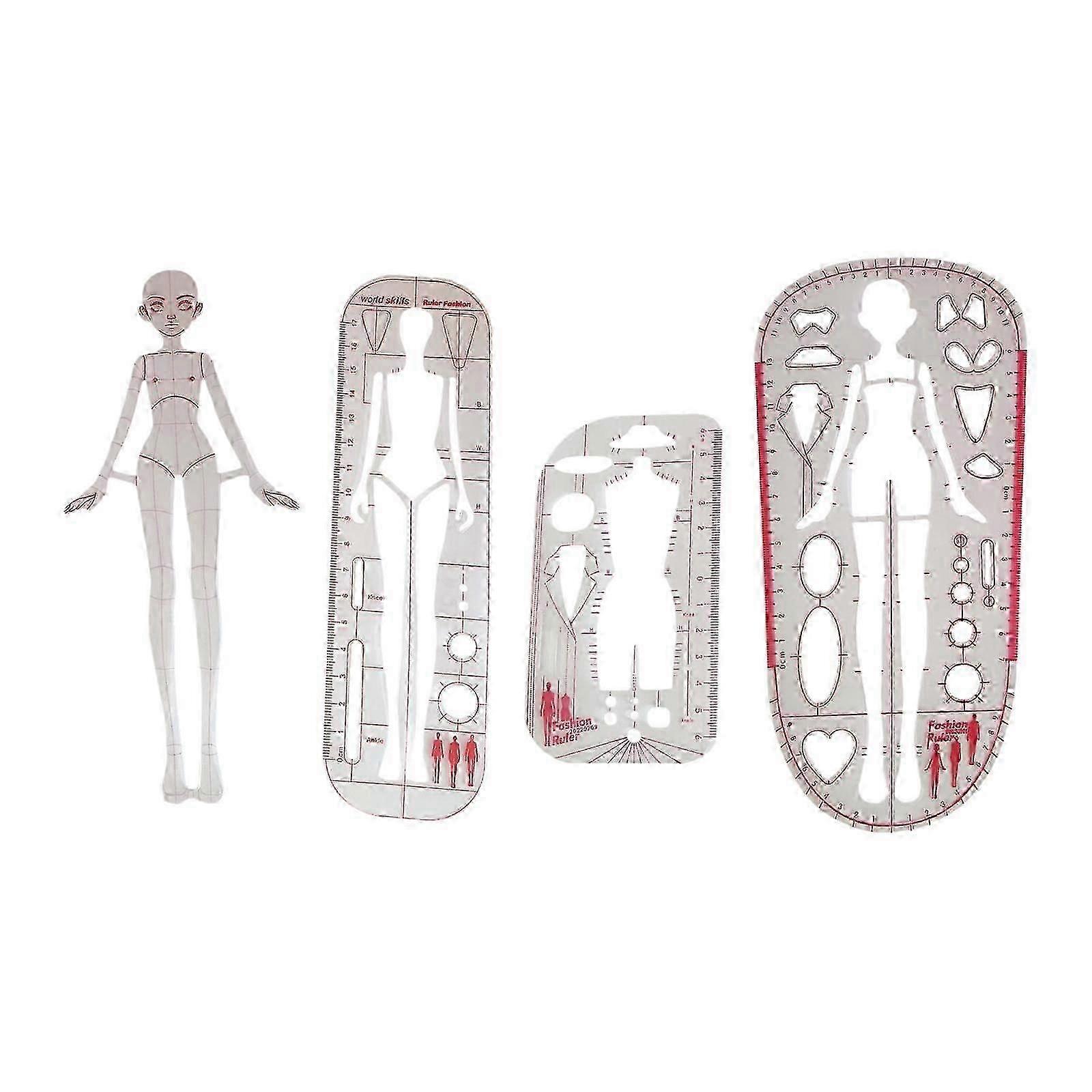 4x Fashion Drawing Template Ruler Set for Designers Clothing Tailor Drafting hwy