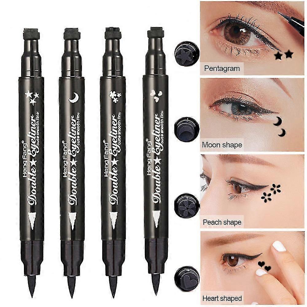 4x Eyeliner Pen Black Double Head Waterproof Liquid Eye Liner Pencil With Stamp