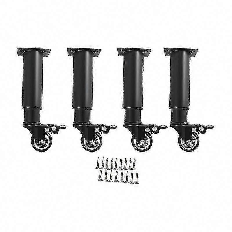 Usage Tips:This universal wheel table leg is made of sturdy and durable cold-rolled steel material with an exquisite design, making it suitable for various tabletops and furniture. Its black/white appearance is fashionable and simple, which can easily blend into different home styles. The bottom of the table legs is equipped with a premium roller with a locking device, ensuring flexibility when needed to move and stability and reliability when fixed in position. Whether it's a home desk, workbench, or other furniture, this product is an ideal choice, providing convenience and stability.Key FeaturesMade to Last: High-class cold-rolled steel, iron, and PP materials with an exquisite baking paint process make this product sturdy, scratch-resistant, impact-resistant, and not easy to corrode and deform, ensuring a long service life.Strong Load-bearing Capacity: The sturdy structure allows it to bear a weight of up to 330.69 lbs, which is sufficient to withstand the weight of various furniture such as sofas, beds, chairs, cabinets, etc. You can use it with confidence.Flexible Rotation: It adopts a soundproof ball universal shaft, which improves the load-bearing capacity and durability with low friction resistance and low noise, which can achieve 360 rotation and smooth rolling, and can maintain flexible movement even on uneven ground.Complete Set: Our product is a complete set consisting of four universal wheel table legs, fully meeting your usage needs and effectively ensuring the stability of the table.Adjustable Design: The product adopts a stretchable structural design, allowing you to adjust the height of the product within the range of 7.28-10.24 inches to accommodate different types and heights of furniture.Modern Appearance: The black/white appearance and simple structure of the product present a fashionable and minimalist style, making it easy to integrate into different home decoration styles.Easy Installation: The integrated product structure does not require you to assemble it yourself. You only need to install it on the furniture with screws to start using it, which is very simple and convenient.Effortless Cleaning: It has a smooth surface and a simple structure, so you only need to wipe the dust or residue with a towel.DetailsBrakes: Each wheel is equipped with brakes to ensure flexibility and ease of movement when needed, and stability and reliability when in a fixed position.Standard Mounting Holes: They make installation quick and easy without the need for drilling holes, saving time and effort.ApplicationThis product is suitable for sofas, beds, chairs, cabinets, desks, tables, shelves, bookshelves, armchairs, dressers, TV stands, and other home furniture as well as DIY furniture.How to Install1.Prepare a screwdriver(not included) and screws.2.Fix the positions and holes to be installed.3.Align the screws with the holes and tighten them.4.Adjust the height by manually turning the furniture legs.SpecificationMaterial: Cold-rolled Steel, Iron, PPColor: Black/WhiteProcess: Baking PaintStyle: ModernInstallation Required: YesProduct Size(D*H): 3.5*18.5-26cm/1.38*7.28-10.24inMoungting Base Size: 4.6*6.1cm/1.81*2.4inEach Mounting Hole Diameter: 0.6cm/0.24inWheel Height: 6cm/2.36inPackage Size: 21*11*14cm/8.27*4.33*5.51inOverall Max. Load Capacity: 150kg/330.69lbsGross Weight: 1.63kg/3.59lbsNet Weight: 1.55kg/3.42lbsEach Package Included4* Furniture Feet with Swivel Castors1* Screw KitNotesPlease make sure you install the furniture legs correctly and do not exceed the recommended weight limit. Be careful when using the wheels to avoid injury.