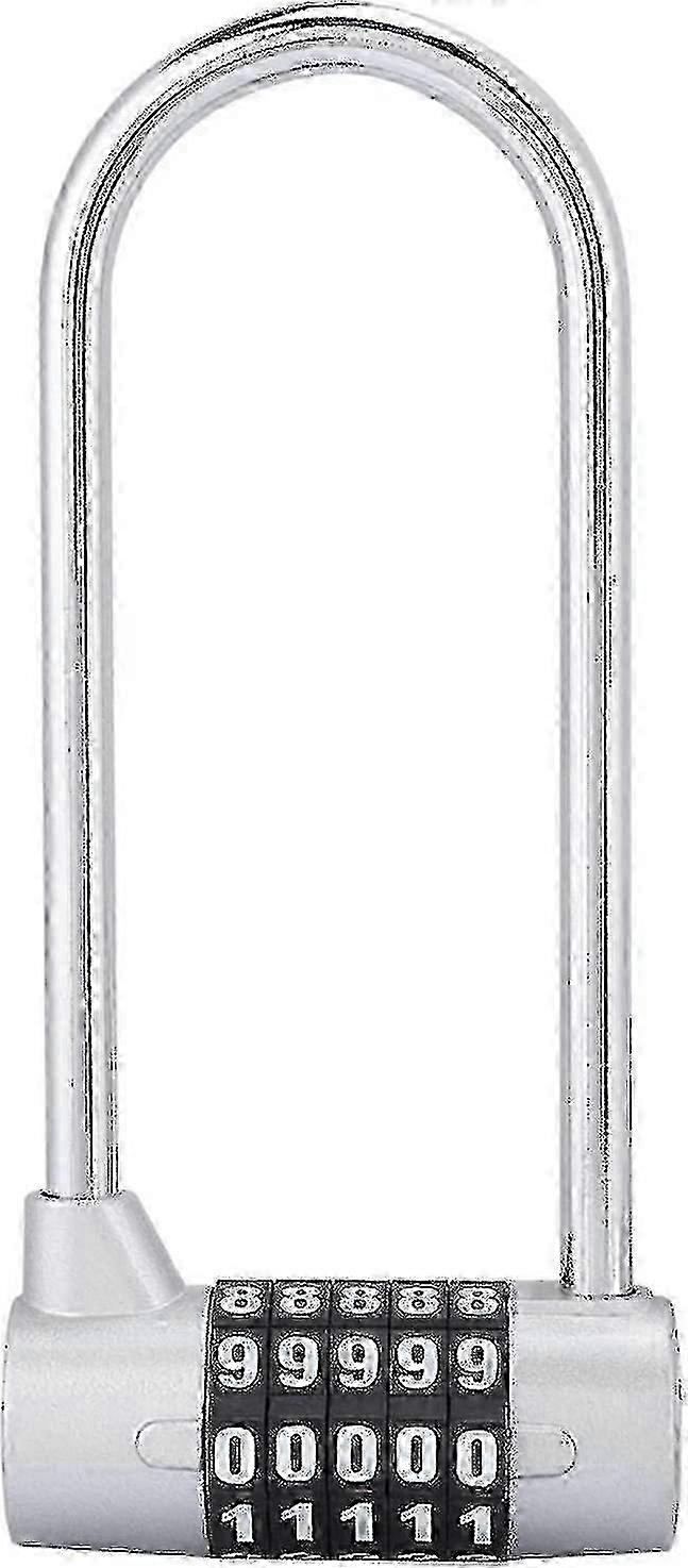 5 Digit Combination Padlock Alloy Safety U Shaped Code Lock Extra Long Locker Lock With Code Lock(silver)