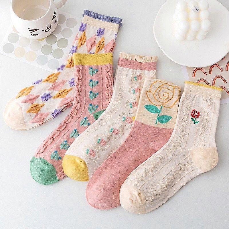 5 Pairs/ Lot Woman Socks Harajuku Retro Embroidery Spring Kawaii Cute Socks Lolita Socks Lace Flower Crew Socks Christmas Gift
