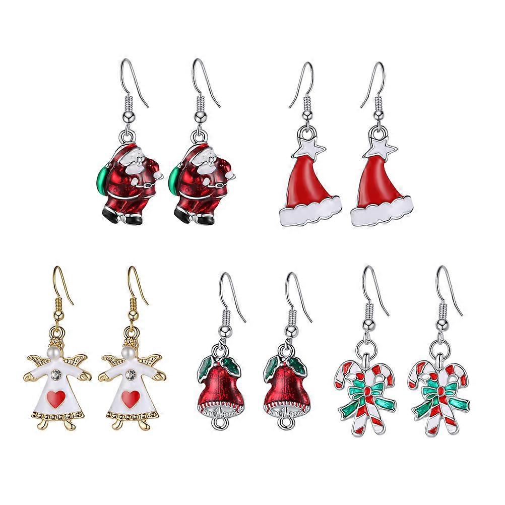 5 Pairs Festive Earrings Assorted Color Ear Jewelry Christmas Design Ideal For Women Girls Dating Every Day Wear