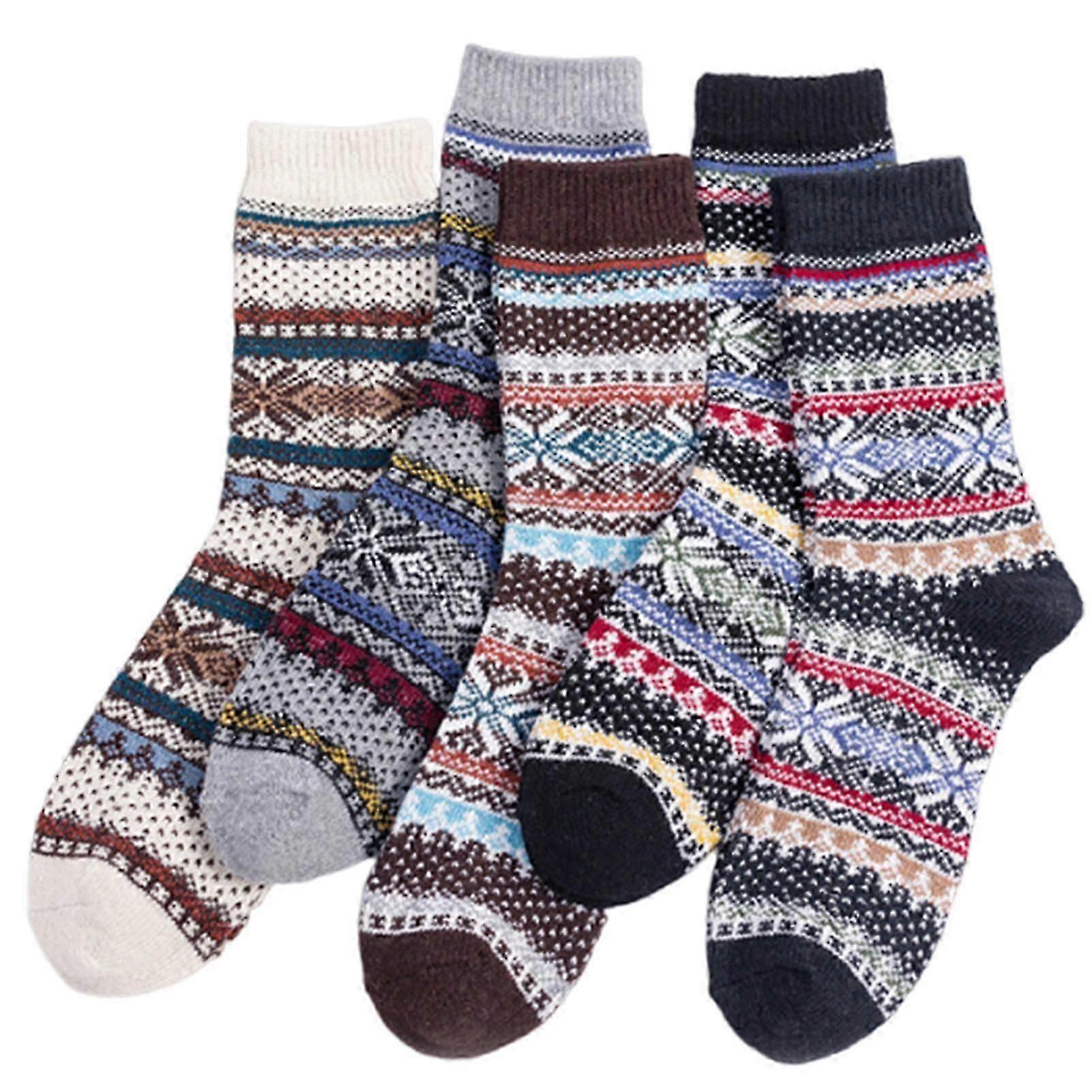5 Pairs Unisex Wool Knit Winter Socks Vintage Thicken House Socks Soft Comfort Crew-Socks for Men Women