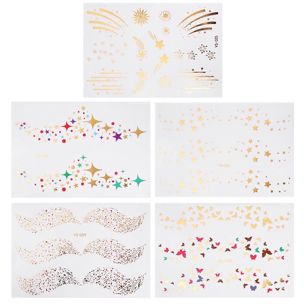 5 Sheets Waterproof Tattoos Gold Foil Sticker Temporary Halloween Stickers