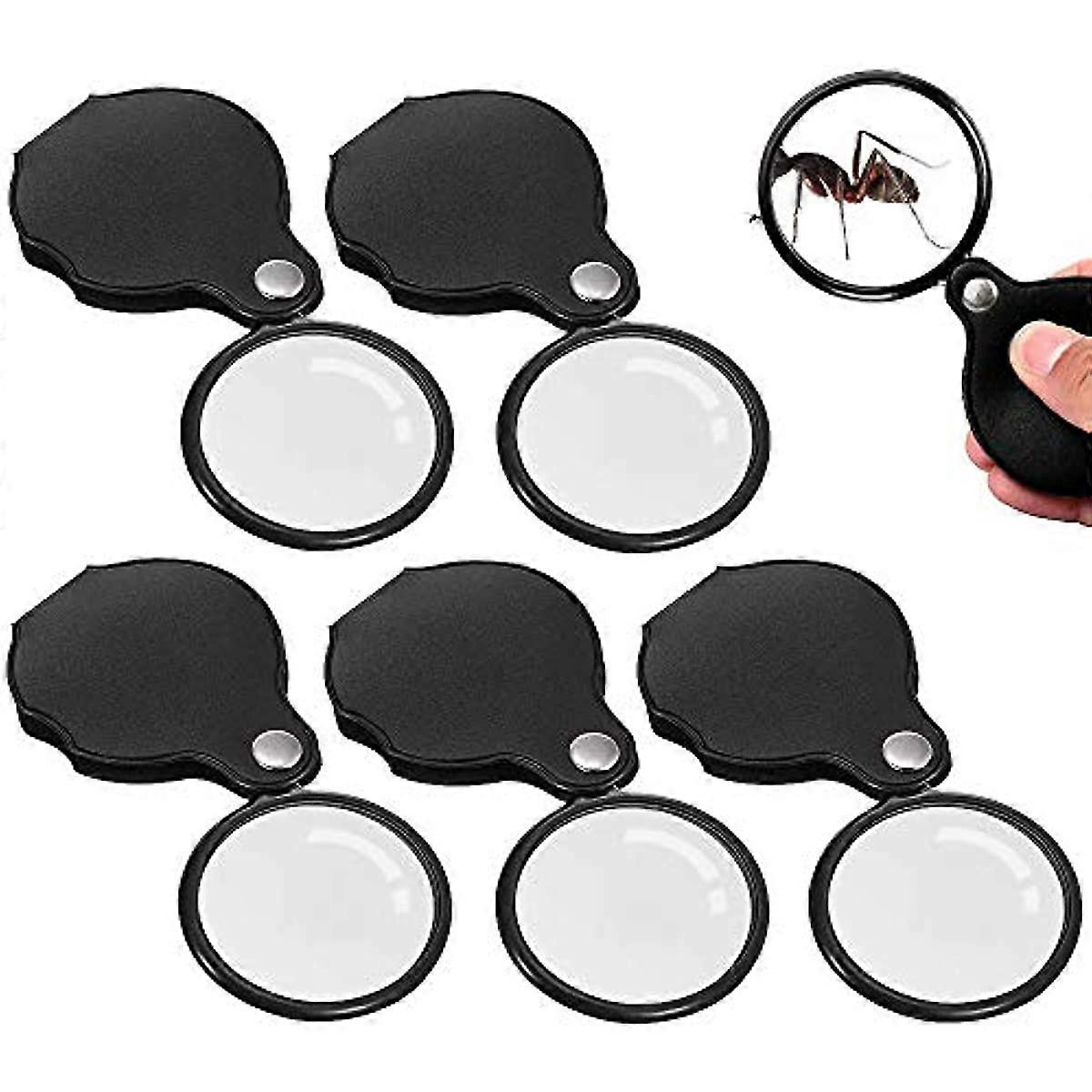 5 Pack Folding Pocket Magnifying Glass Mini Pocket Magnifier 10X Folding Pocket Magnifier with Cortical Protective Cover for Reading, Crafts, Science