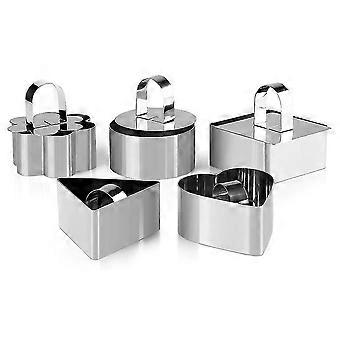 Product DescriptionHigh Quality Stainless SteelCake ring mold set is made of high quality stainless steel, we are sure that you will be satisfied with the qualityExcellent for baking, layering, and molding. Different shapes give you different experienceMake of Stainless Steel, safe and reliable, rustproof, no sharp edge, suitable for all users like adults and childrenExcellent for baking, layering and molding, you can use the rings for cutting cake. Suitable for use it for baking pastry, icing, cookies, biscuits, sandwiches and moreIdeal for creating flower shape, square shape, heart shape, circle shape and triangle shape appetizers, molded salads, cakes, mousse and desserts etc, beautiful decoration for cake cookingOven safe, freezer safe, dishwasher safe. Neatly stored in the storage box, saving your counter top from messPackage includes 5 dessert rings and 5 press covers