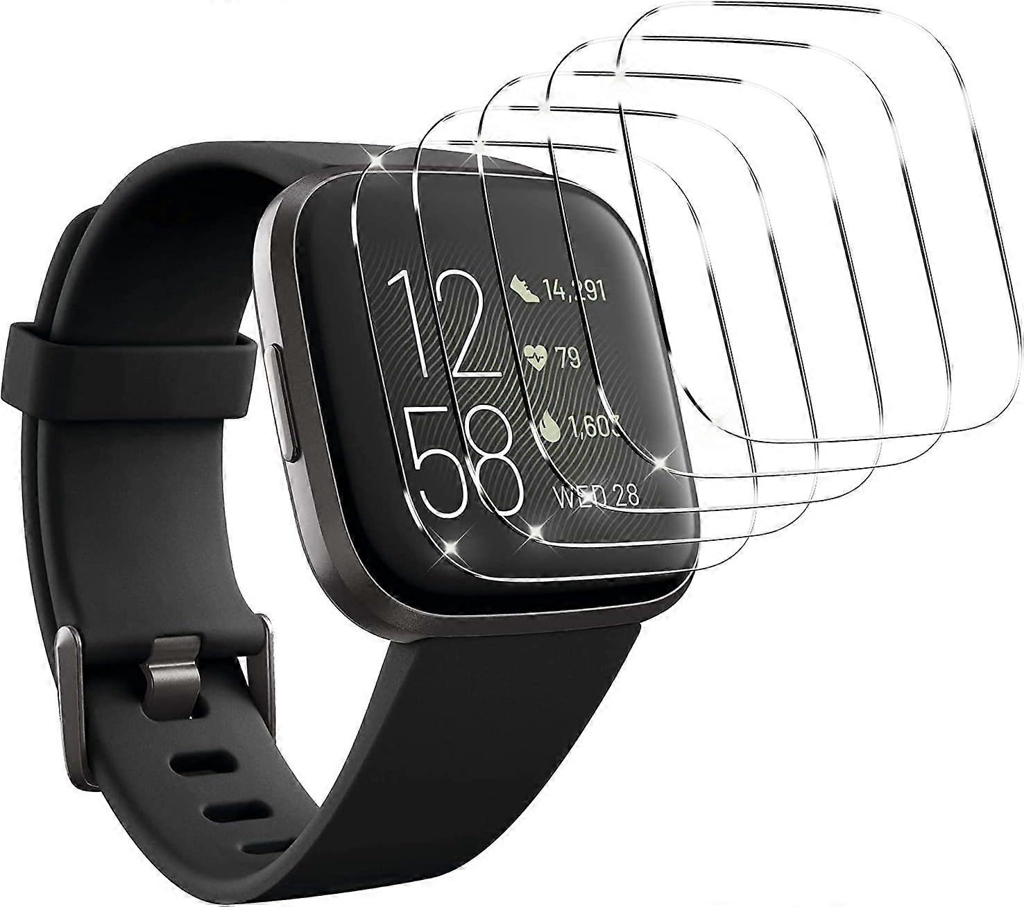 [5 Pack] Compatible for Fitbit Versa 2 Tempered Glass Screen Protector, Waterproof 9H Hardness Crystal Clear [No-Bubble] Anti- Scratch Easy Installat