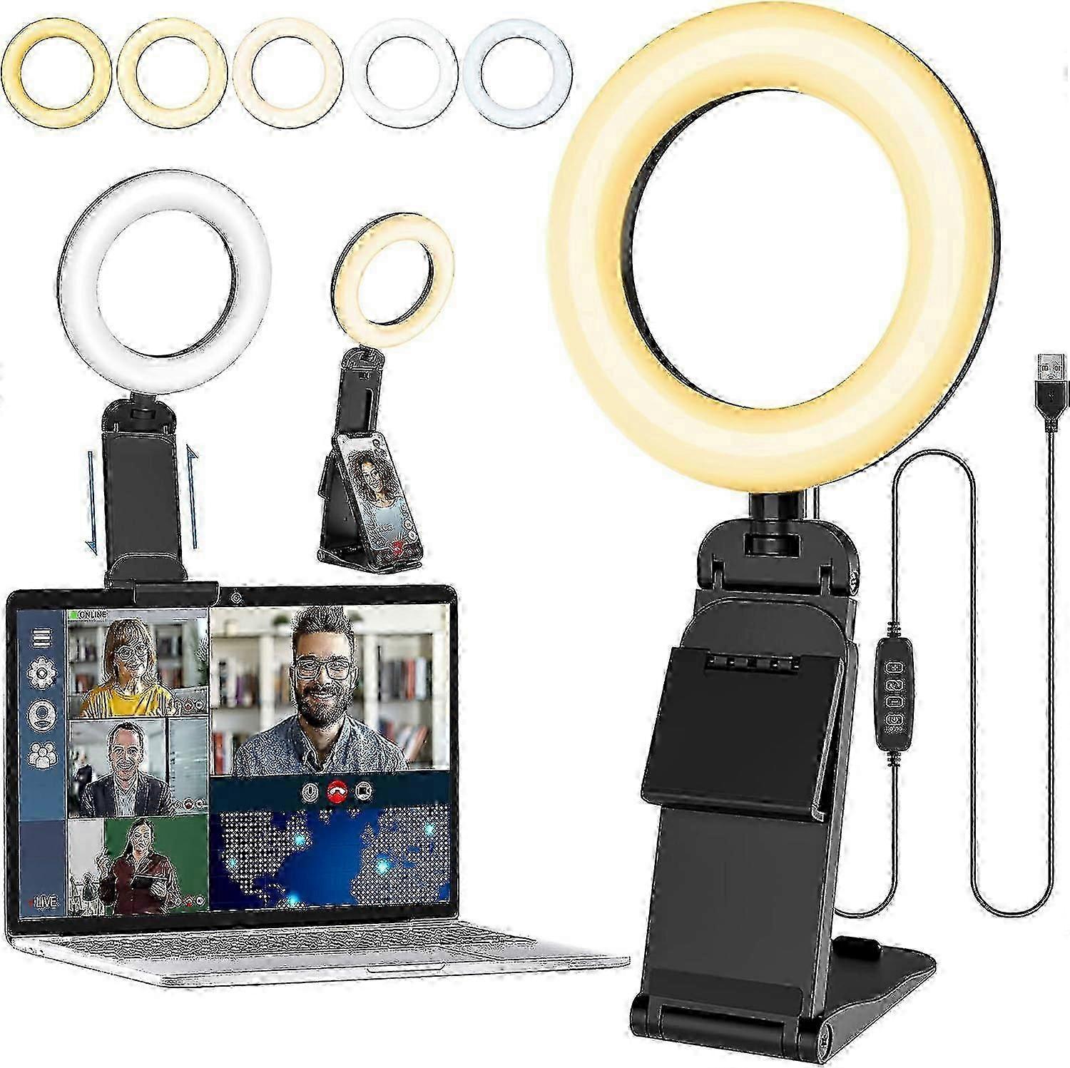 5' laptop selfie ring light with stand 5 modes 10 brightness makeup webcam