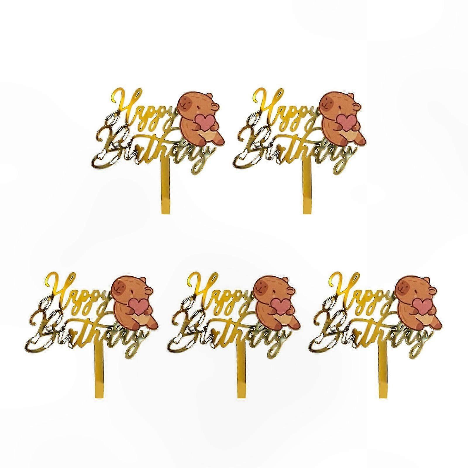 5-Pack Adorable Capybara Cake Toppers Acrylic Animal Cupcake Decorations for Birthday Parties and Dessert Styling