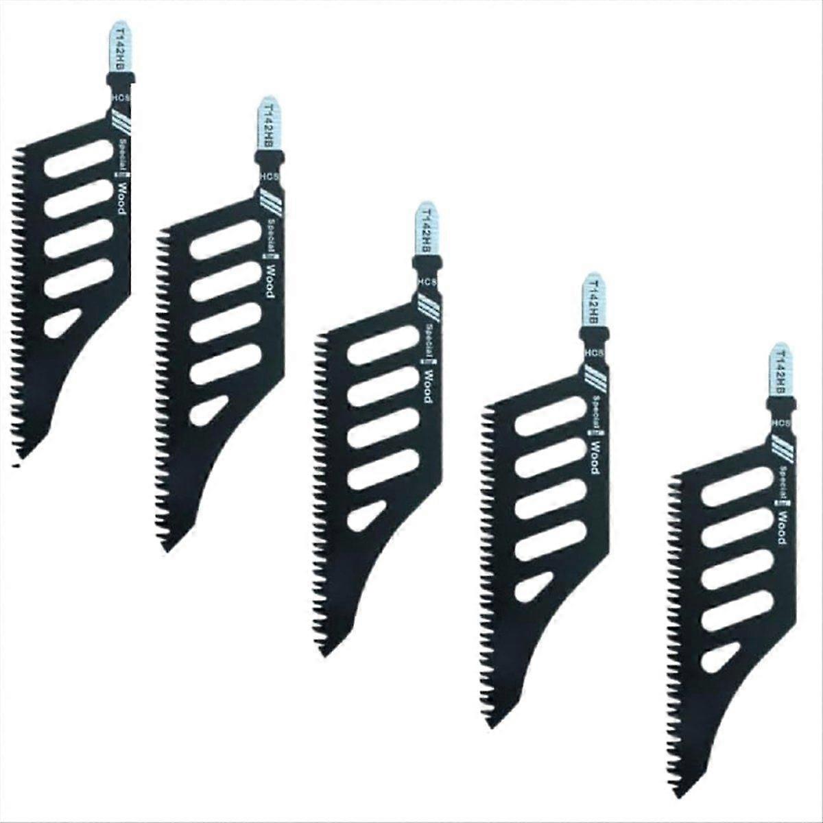 5 Pack Special Wood T142HB Curved Jigsaw Blades, Black Steel Construction,Special-Shaped Design for