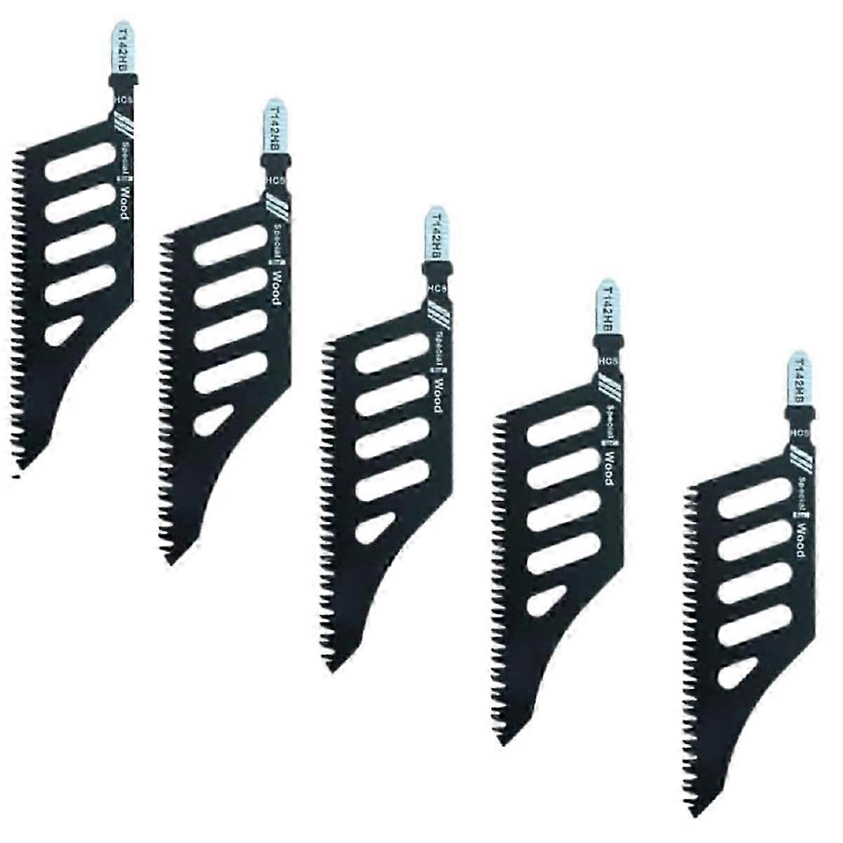 5 Pack Special Wood T142HB Curved Jigsaw Blades, Black Steel Construction,Special-Shaped Design for