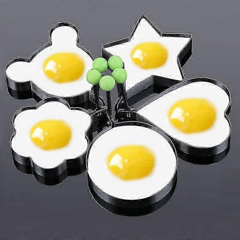 5 Pack Round Stainless Steel Fried Egg Molds with Folding Handles for Oil Bottle