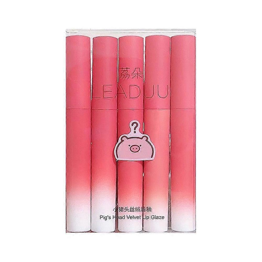 5 Pack Piggy Head Velvet Lip Glaze Set Matte Whitening Non Fading Makeup
