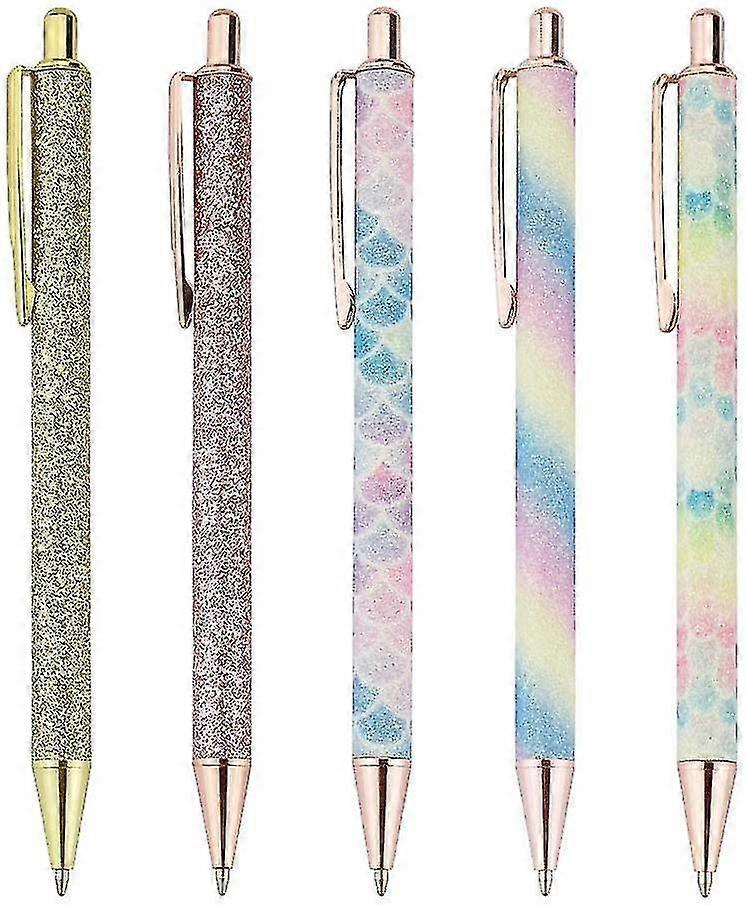 5 Pack Retractable Ballpoint Pens Black Ink Medium Point (1.0m) With Rose Gold