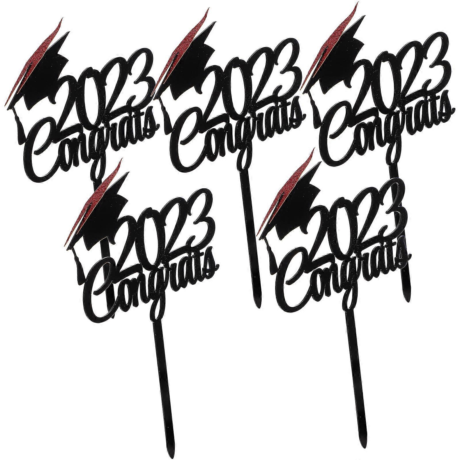 5pcs Acrylic Congrats Grad Cupcake Topper 2023 Graduation Party Cake Decoration
