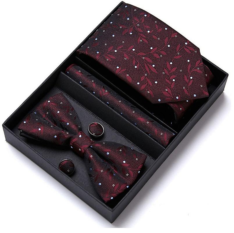 5pcs Tie Set In Gift Box Solid Necktie, Satin Bow Tie, Pocket Square, Cuff Links