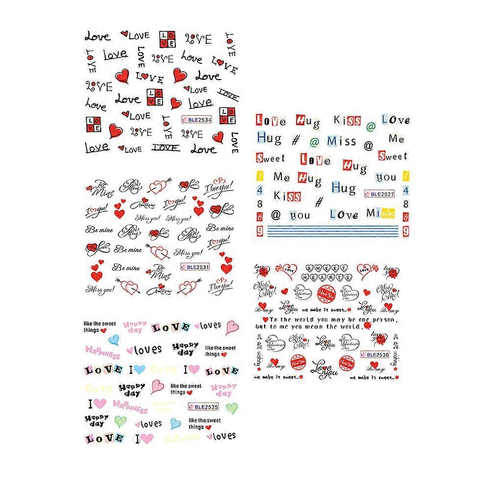 5PCS Love Heart Design Nail Sticker Nail Art Stamping Plates Kit Valentine's Day Sticker Set Manicure Template