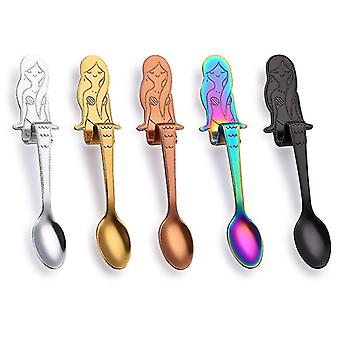 5 قطع الفولاذ المقاوم للصدأ ملعقة القهوة ، حورية البحر ملعقة ، حساء الشاي السكر الحلوى المقبلات التوابل بيسترو ملعقة ، شنقا كوب أدوات المطبخ متعددة الوظائف