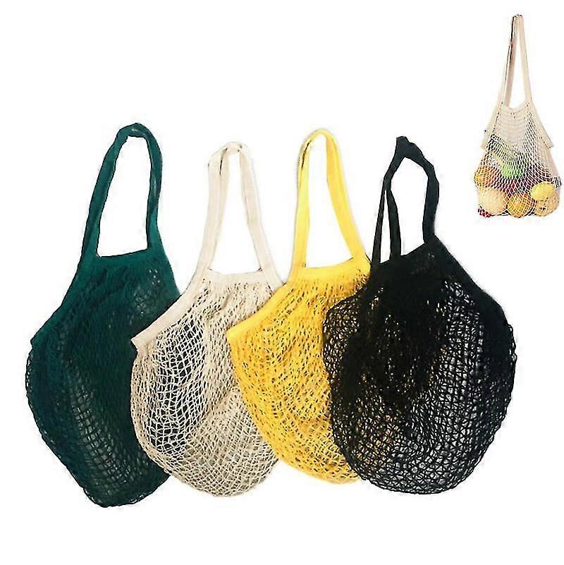 5 Pcs Cotton Shopping Net Bag With Long Handle, Reusable Shopping Bag Nets Bag Potato Sack, Portable Shopping Net Organizer For Warehouse Fruit Vegeta