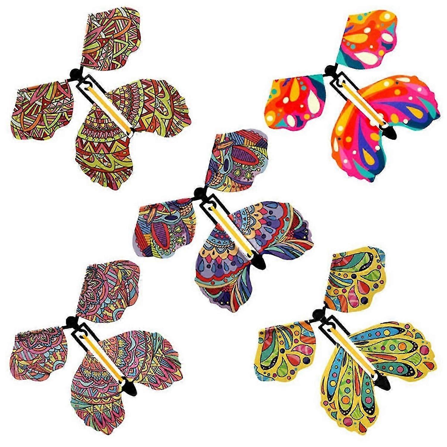 5PCS Flying Butterfly Wind Up Toys Rubber Band Powered Romantic for Surprise Wedding Birthday