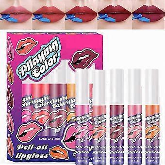 5PCS Peel Off Lip Stain Lip Gloss Set, Matte Tattoo Colour Lip Tint Set, Waterproof & Long Lasting Lipstick Set, Highly Pigmented Non-Stick Lip Gift