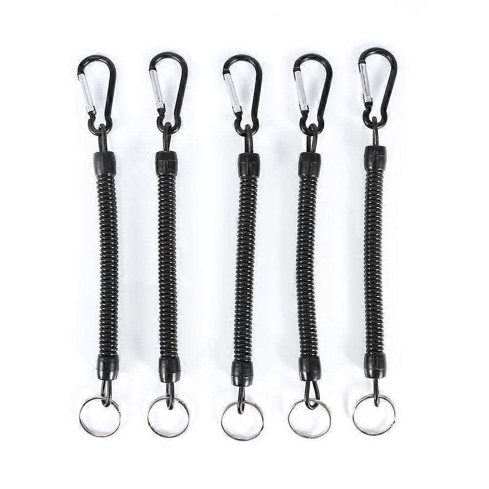 5Pcs Retractable Fishing Lanyards Boating Ropes With Buckle Tackle Secure Accessories Black