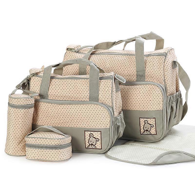 5 Piece Baby Changing Bag Baby Bag Mother's Diaper Bag Handbag Shoulder Bag Bottle Holder with Changing Pad