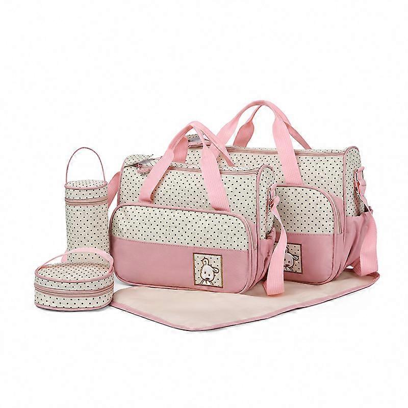 5 Piece Baby Changing Bag Baby Bag Mother's Diaper Bag Handbag Shoulder Bag Bottle Holder with Changing Pad