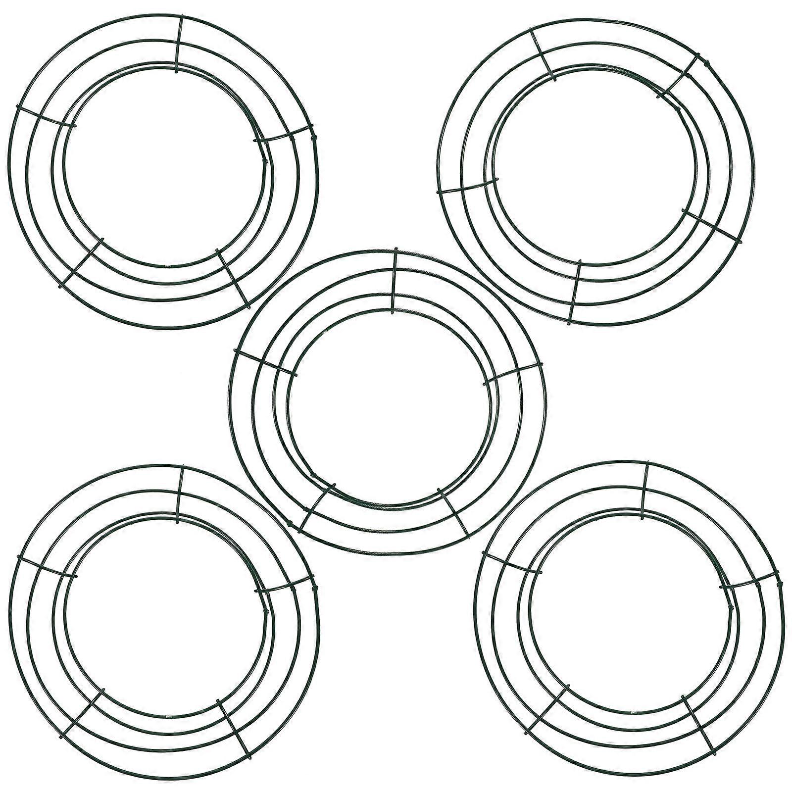 5pcs Metal Wreath Frame Rings with Green Coating, Sturdy Round Iron Wire for DIY Floral Crafts, Christmas Decorations, Garlands, and Home Garden