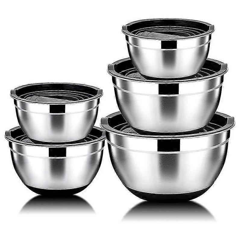 5 Pcs Mixing Bowl,Stainless Steel Salad Bowl with Airtight Lid&Non-Slip Base,Serving Bowl for Kitch