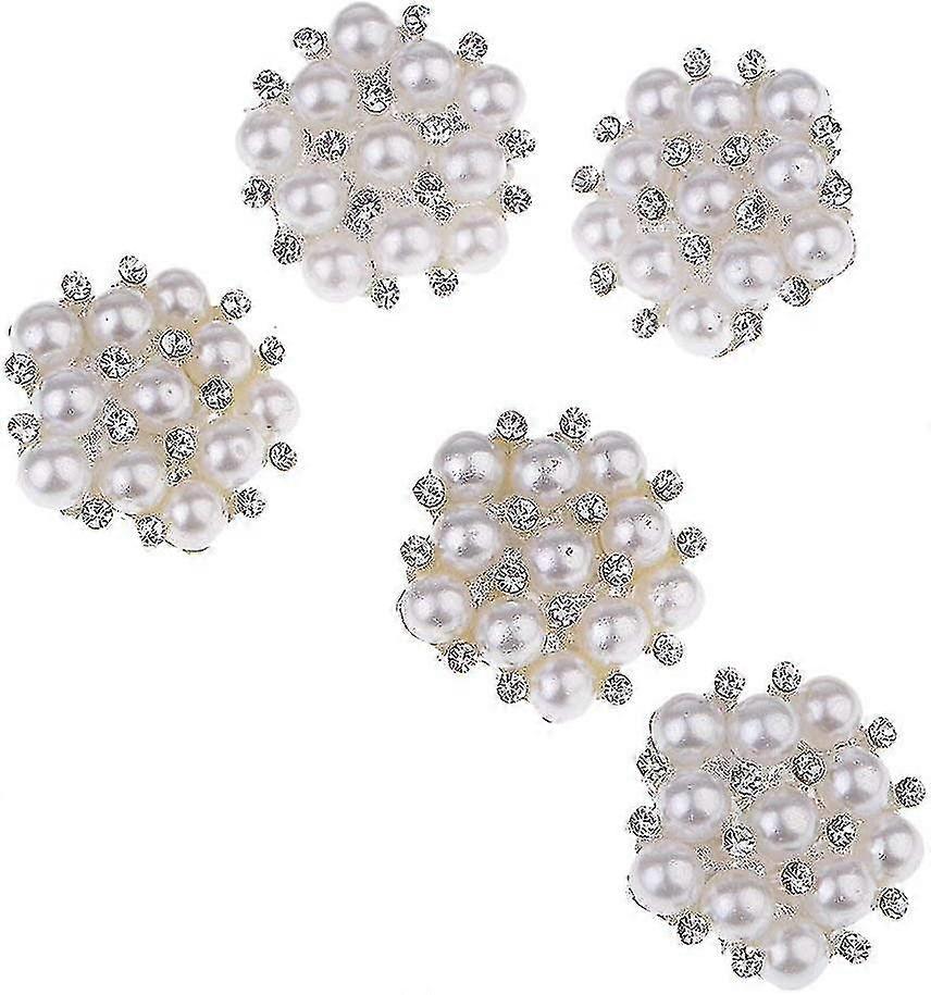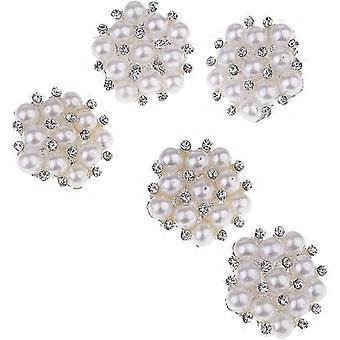 5 Pieces Diamante Rhinestone Pearl Flower Decorative Shank Button(20mm) T