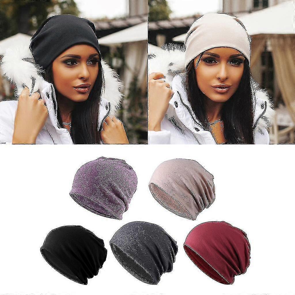 5 Piece Slouchy Baggy Beanie Chemo Hat Cap Khaki + Black + Gray + Wine Red + Purple